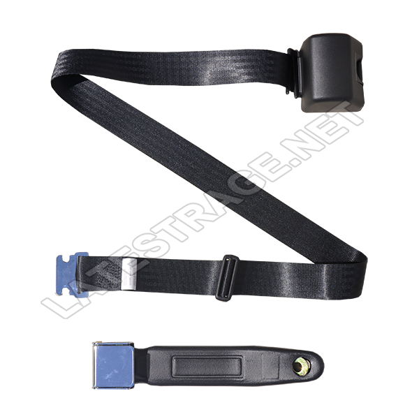 Retractable Seat Belt Black Flat Chrome Buckle Lap Only Each