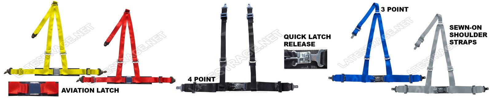Seat Belt 2″ Lap X 2″ Sewn-On Shoulder Straps Black 4 Point Chrome Aviation Latch Release Polyester Each Crotch Strap Sold Separately